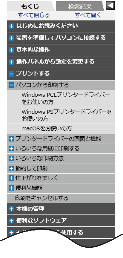 [-]をクリックすると、下位のタイトルを閉じます。