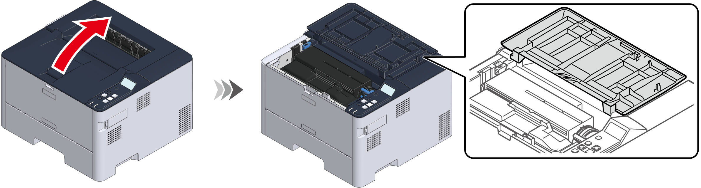 トップカバー手前を開けます。
