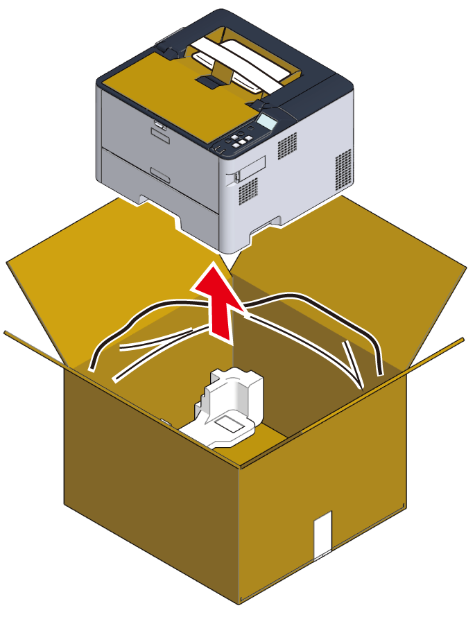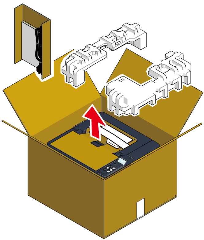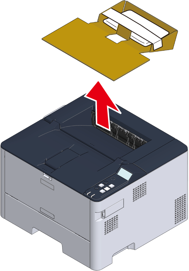 本機の上部にある段ボールシートを取り外します。