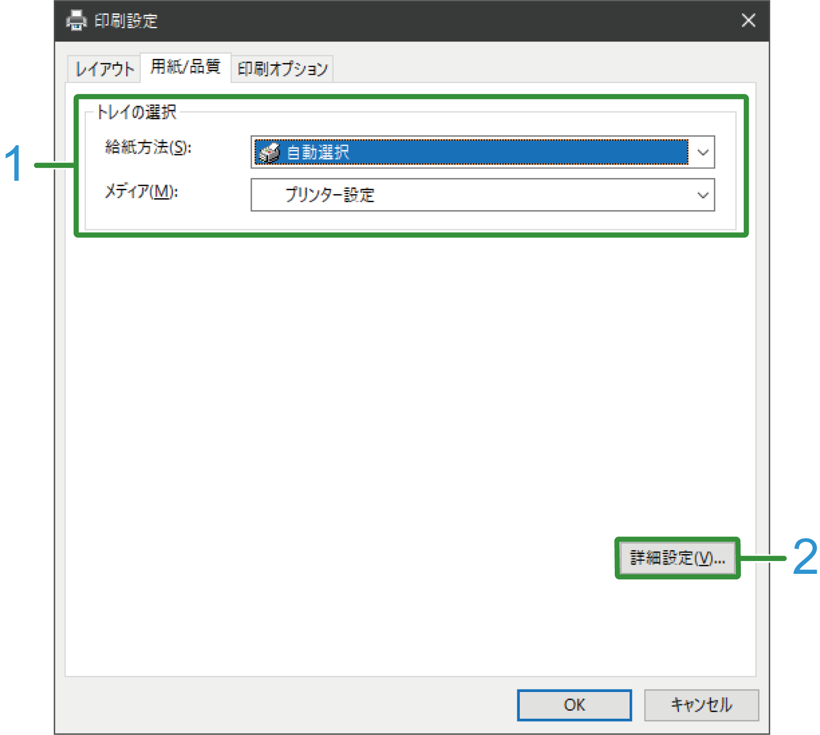2 | 詳細設定 | 印刷品質や用紙サイズなどの詳細な設定ができます。 |