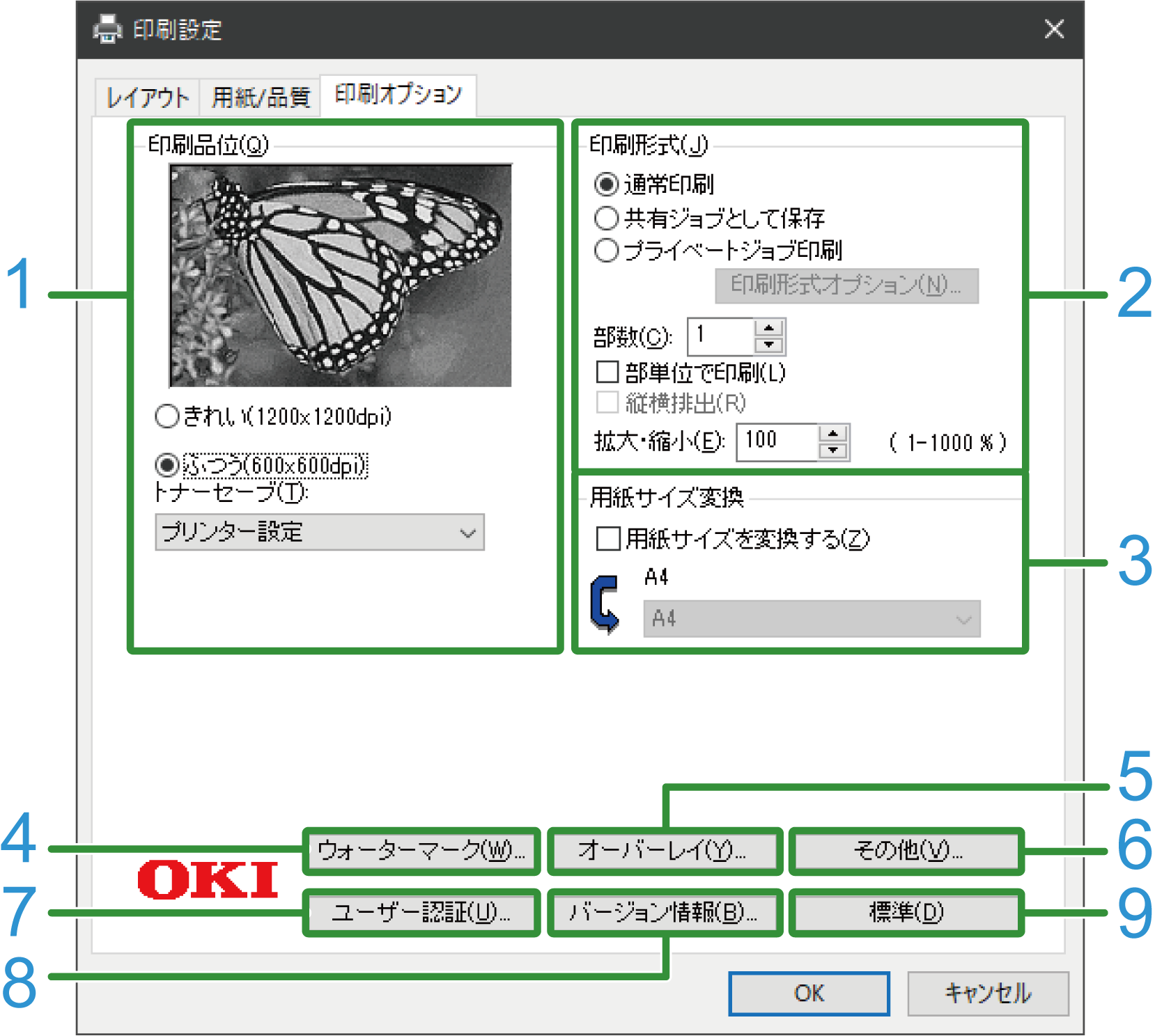 6 | 詳細設定 | 印刷品質や用紙サイズなどの詳細な設定ができます。 |