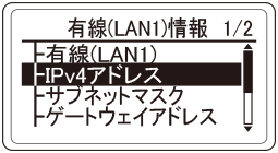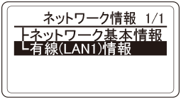 ▼を押して[有線(LAN1)情報]を選択し、《OK》を押します。