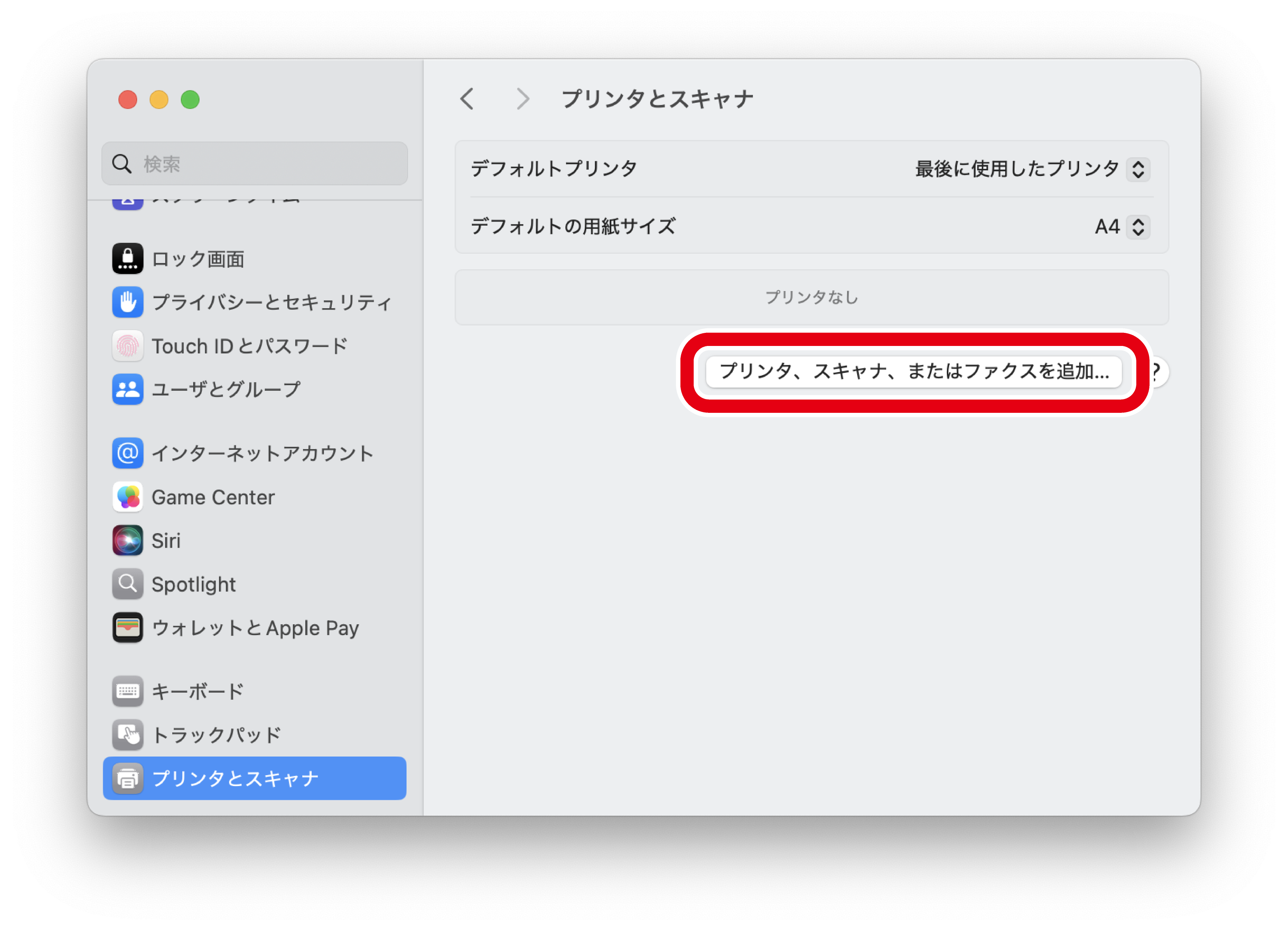 [プリンタ,スキャナ,またはファクスを追加]をクリックします。