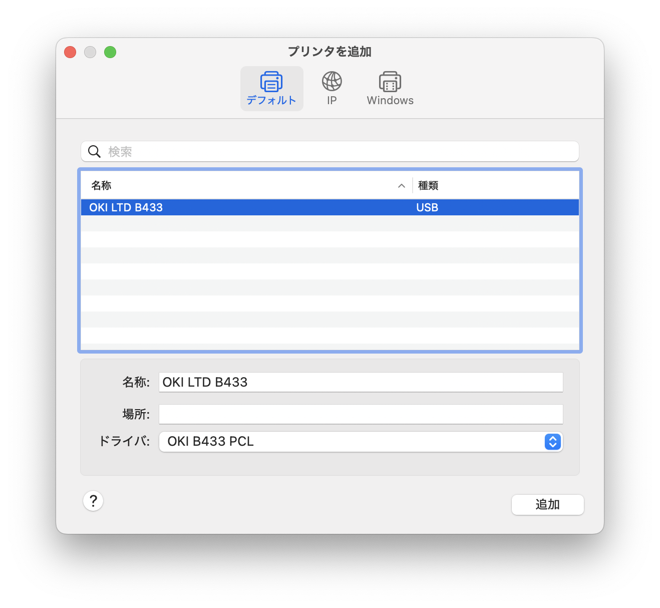 リストから本機を選択し、[ドライバ]から[OKI *** PCL](***はお使いの機種名)を選択します。