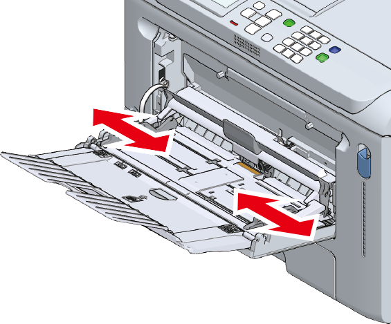Adjust the manual feeder guide to the width of the paper to be loaded.