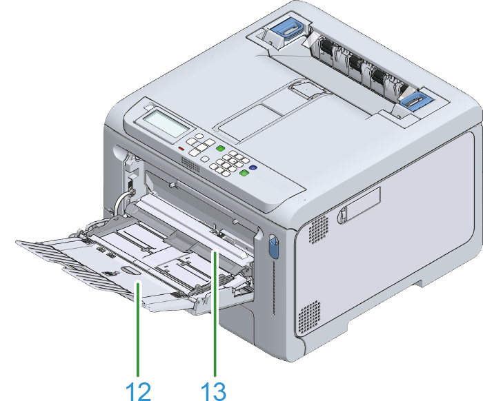 12 | Paper supporter | Load the paper in the MP tray. |
