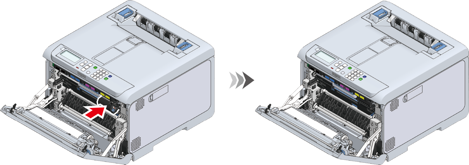 - The output tray cannot be closed unless the image drum basket is pushed all the way in.