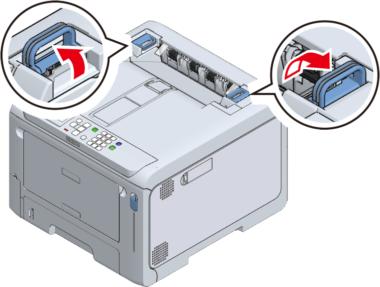 Lift the left and right handles of the fuser unit at the back of the output tray until a click is heard, and then release the lock.