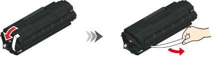 Remove the new toner cartridge from its packaging bag, and shake it horizontally to even out the toner inside.