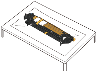 Remove the new image drum from its packaging bag, and then place it on a flat surface covered with newspaper or the like.