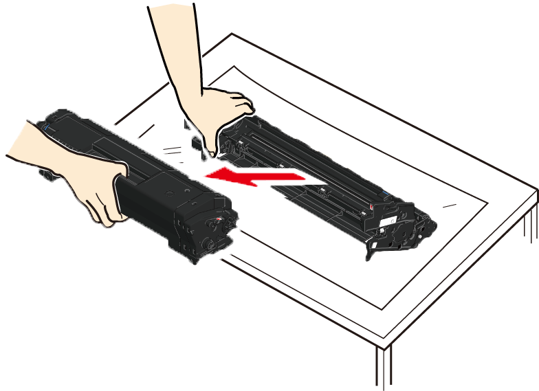 Place the toner cartridge and image drum on a flat surface covered with newspaper or the like.