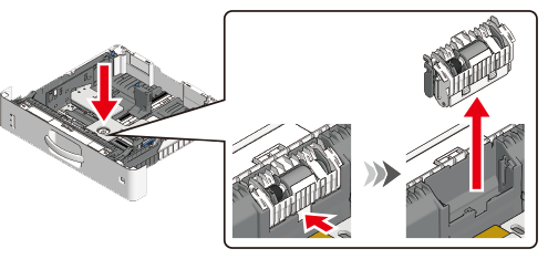 Slide up to remove the separation roller while pressing the metal plate and pressing down on the center of the separation roller.