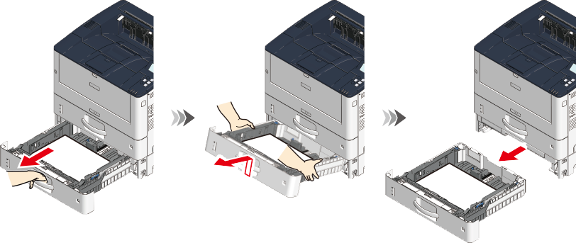 Paper feed roller (with gear) Pull out the paper cassette of Tray 2 by holding its handle until it stops, raise the paper cassette a little by holding its both sides, and take it out.