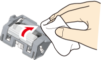 Wipe the separation roller with a cloth slightly moistened with water while rotating it in the arrow direction.