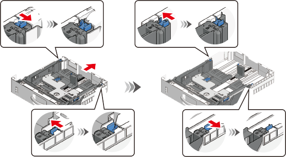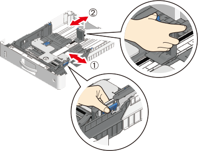 - If you are using B822dn/B842dn, to load paper in the expansion tray unit (large), check the position of the paper feed adjusters (x2) as well.