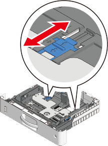 Slide the paper guide and the blue part of the paper stopper to fit the size of the paper to be loaded.