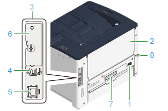 6 | Wired LAN module cover (LAN2) | This is the storage port of the optional Wired LAN module. It cannot be used together with the Wireless LAN module at the same time.
