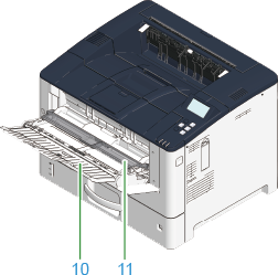 11 | Paper placement cover | Holds the paper loaded in the MP tray. |