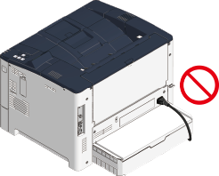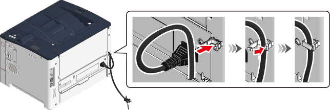 - If you do not thread the power cord through the cord clamp when the paper cassette is extended backwards, the paper cassette and the power cord may come into contact and the power cord may be unplugged from the power connector. Be sure to thread the power cord through the cord clamp.