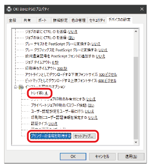 If an expansion tray unit has been installed, after installing the printer driver, change the settings of the printer driver by the following procedure.