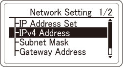 Press «BACK», then press ▼ to select [IPv4 Address] on the [Network Setting] screen, and finally press «OK».