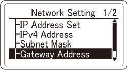 Set the gateway address in the same way as the IP address. After all the digits have been set, the cursor will return to the first digit. Check that [*] is displayed to the left of the set value, and then press «BACK».