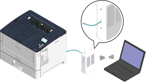 Connect this machine and the access point via wireless LAN (infrastructure) or wired LAN.