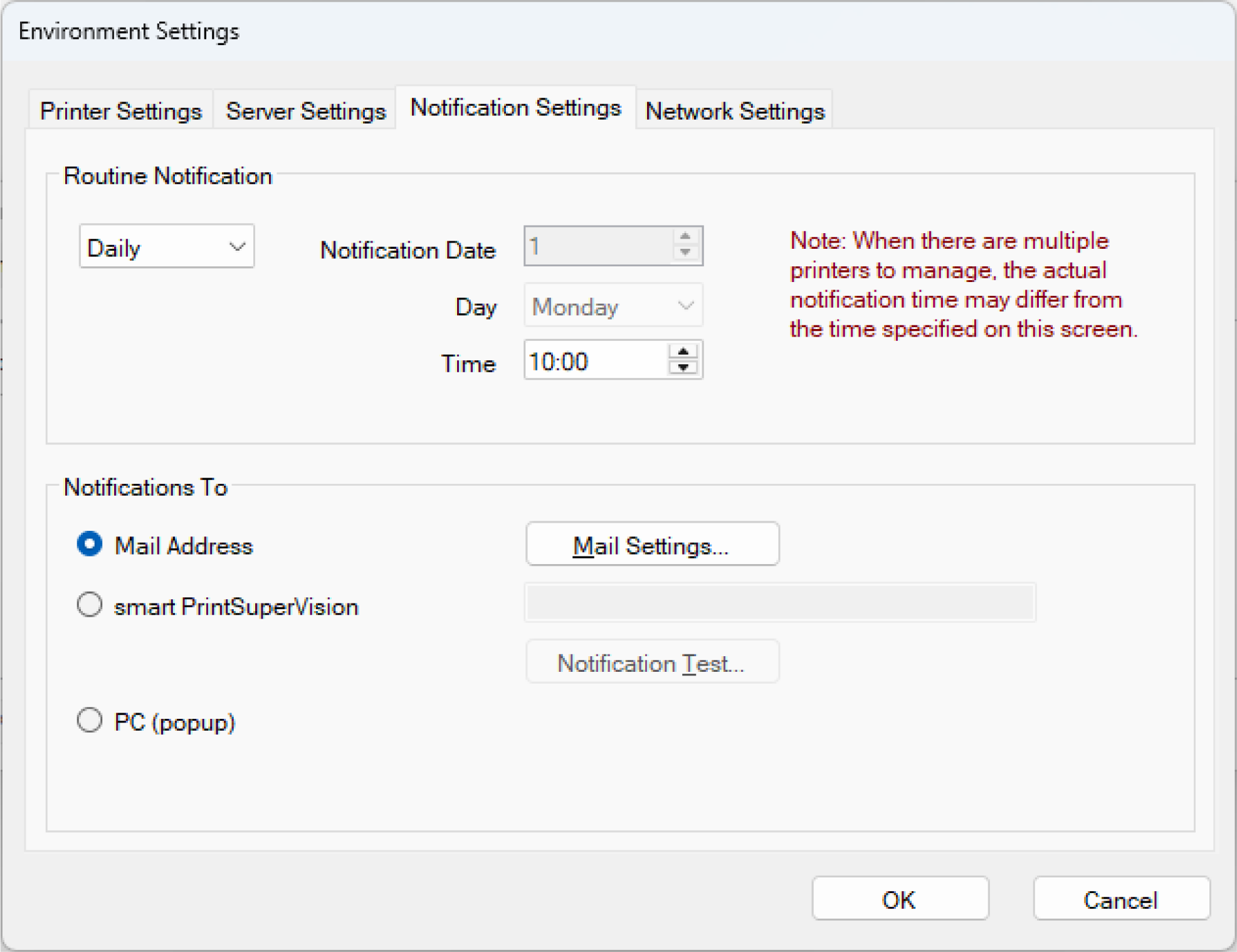 Select your desired notification setting from [Notification Settings] - [Notify Periodically], and click [OK].