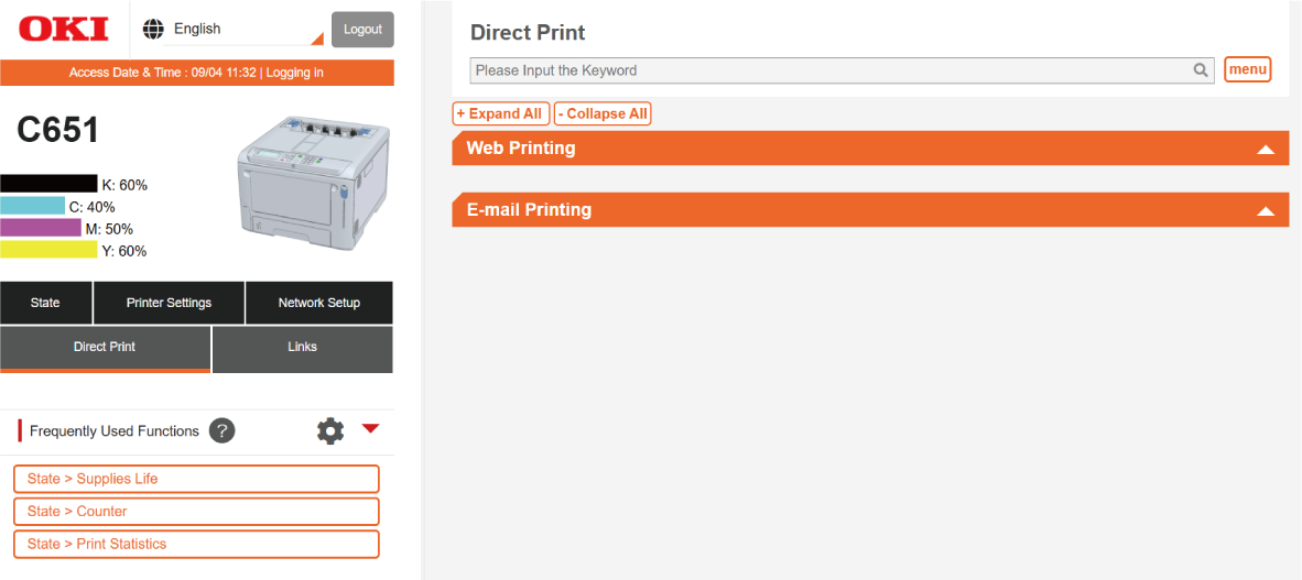 | Direct Print | Web Printing | You can print any PDF/JPEG file you specified. | ◯ | ◯ |