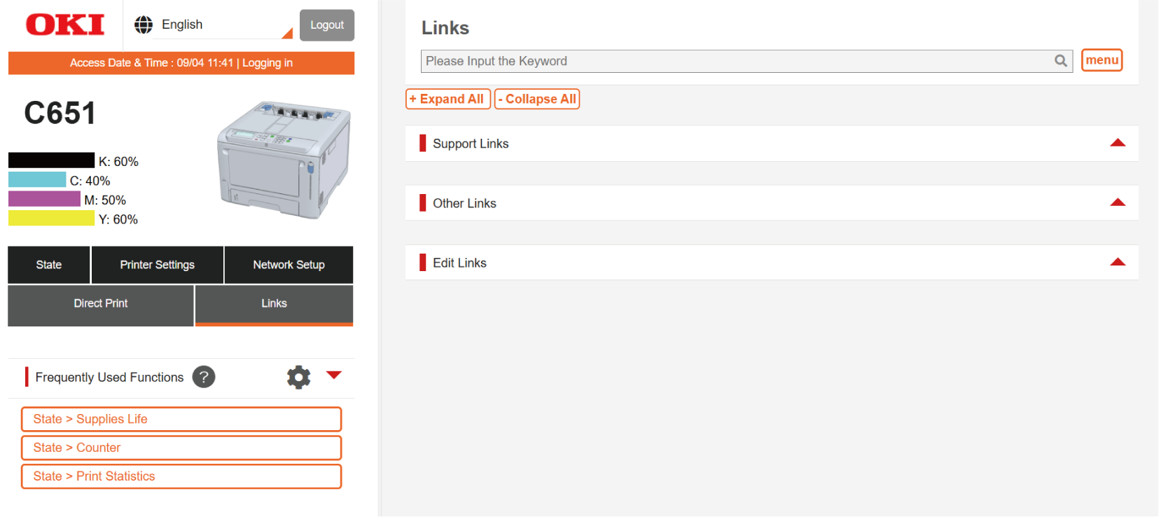 | Other Links | Display the links set by the administrator. | ◯ | ◯ | |