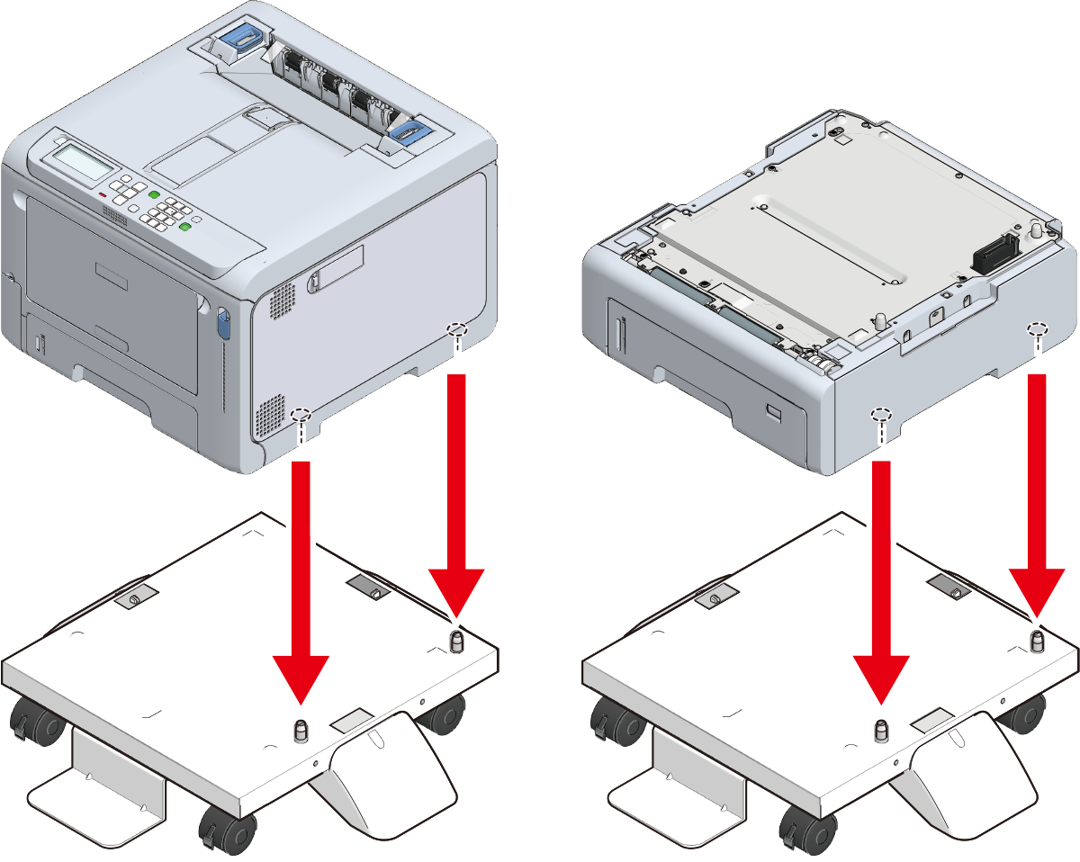 - When moving the machine or replacing consumables or maintenance parts, or loading paper in the tray, check the following points to prevent the printer from tipping over.