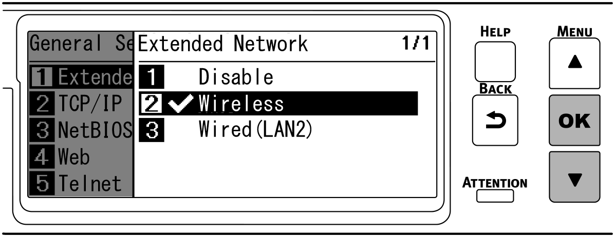 pour sélectionner [Wireless (Sans fil)], et appuyez sur «OK».