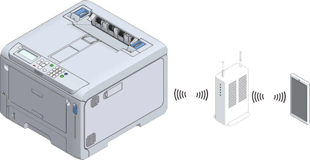 Connectez cette machine à un périphérique mobile via un point d’accès du réseau local sans fil ou directement via le réseau local câblé (Mode AP).