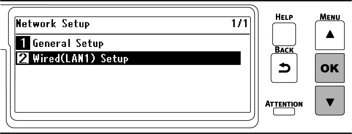 Druk op ▼ om [Wired(LAN1) Setup (Bedrade (LAN1) -instelling)] te selecteren en druk op «OK».