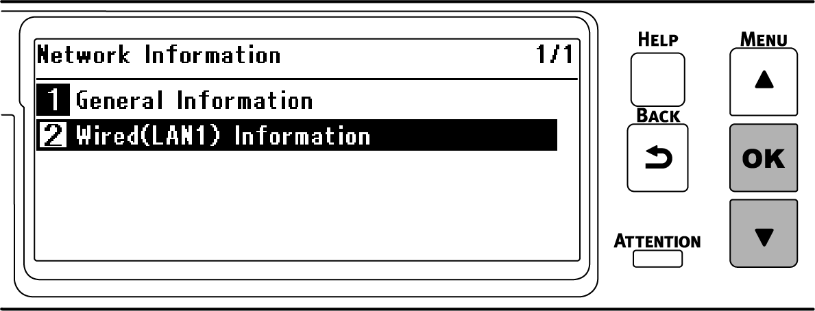 Druk op ▼ om [Wired(LAN1) Informatie (Bedrade (LAN1) -informatie)] te selecteren en druk op «OK».