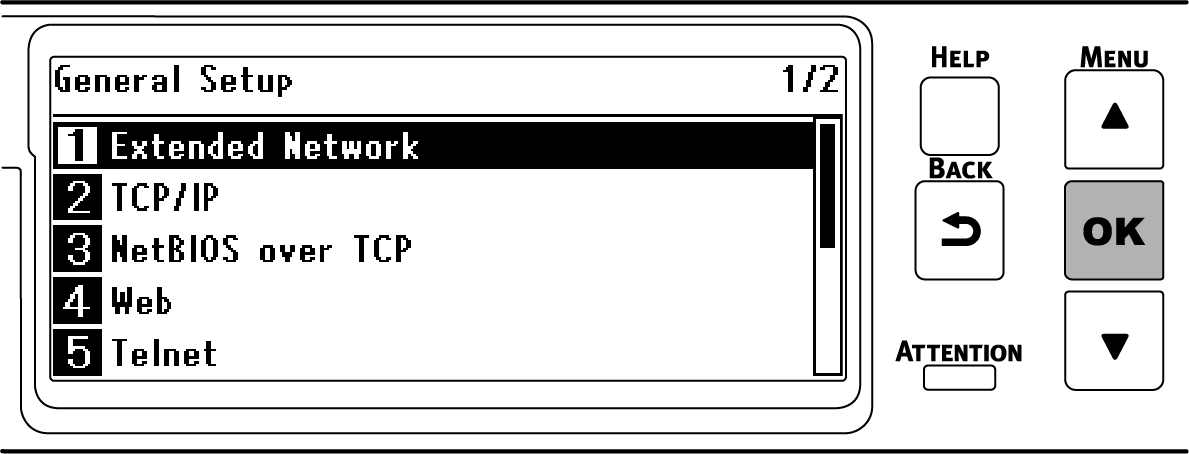 Compruebe que [Extended Network (Red Extendida)] está seleccionado y, a continuación, pulse «OK (ACEPTAR)».