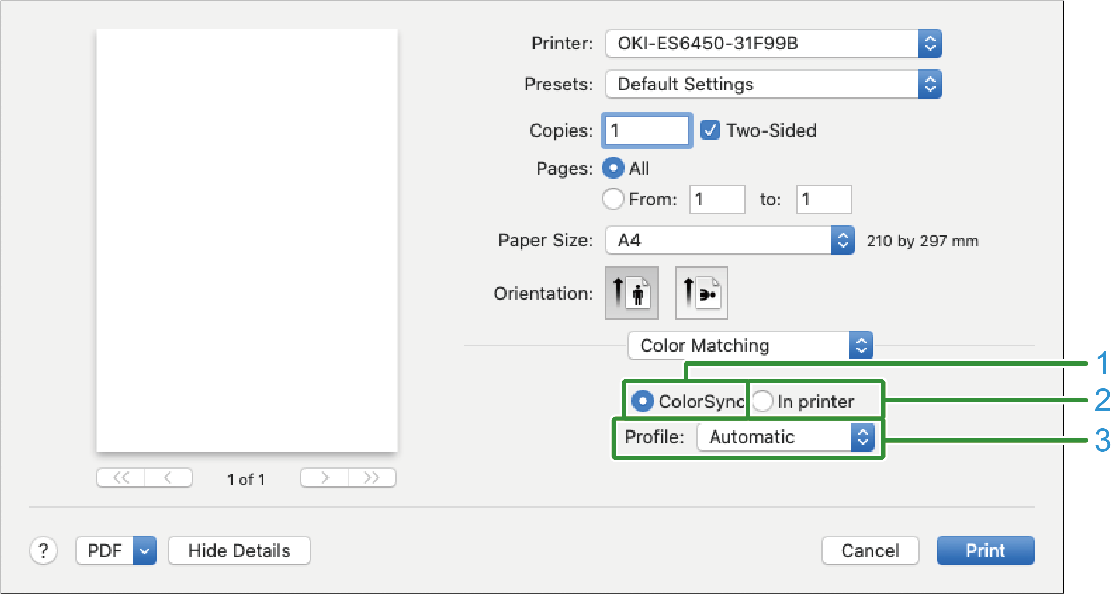 1 | ColorSync (ColorSync) | Especifica la función ColorSync. |