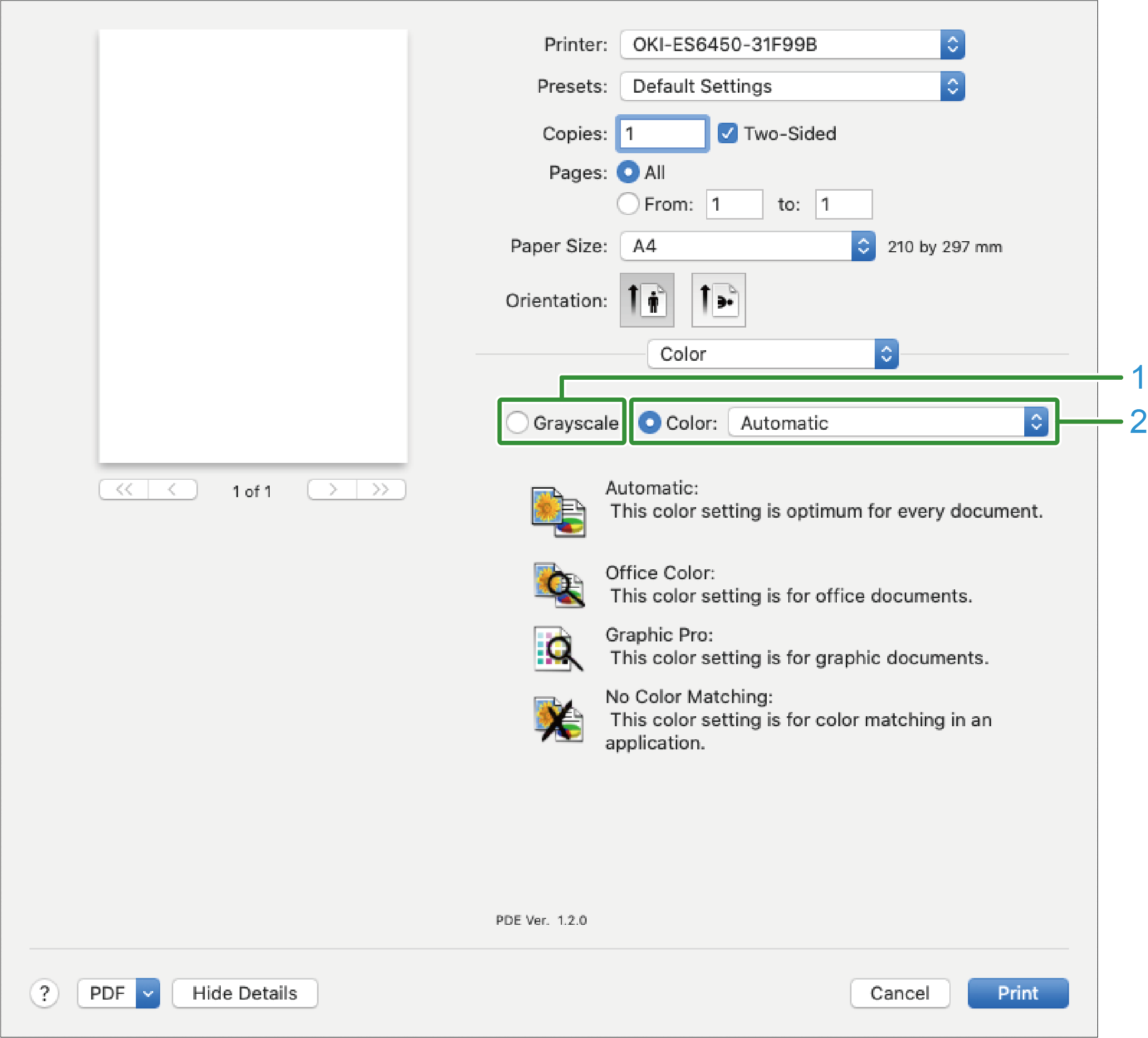 1 | Grayscale (Escala de gris) | Impresión en monocromo. |