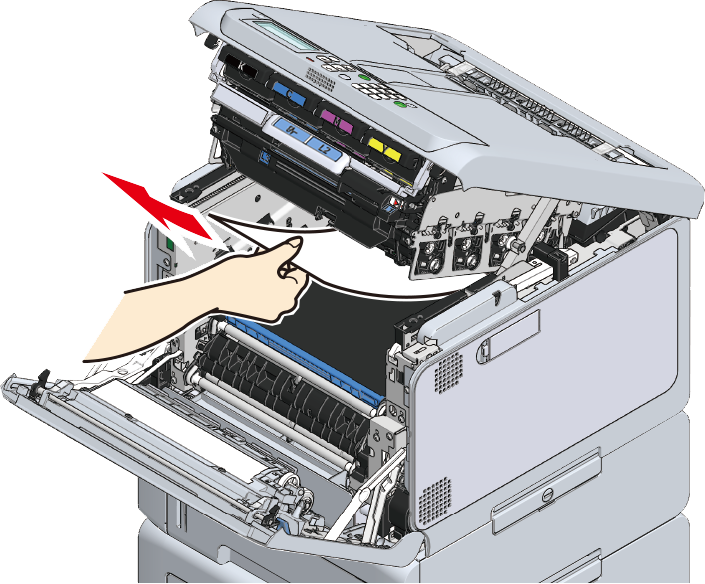 - Extraiga lentamente el papel atascado, si es que hay.