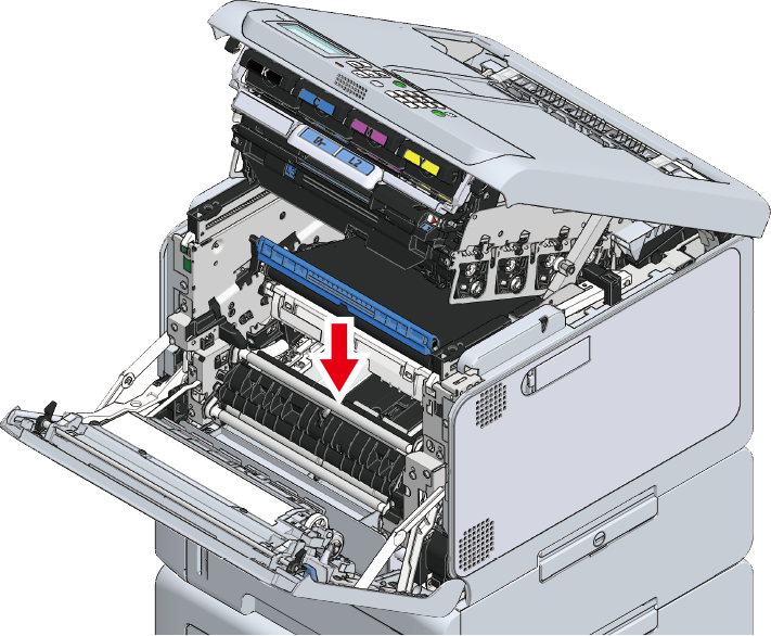- Asegúrese de que la unidad de fusor no flota en la parte superior de la bandeja de salida. Si flota, puede que no se reconozca la unidad de fusor así que no es posible iniciar la impresión.