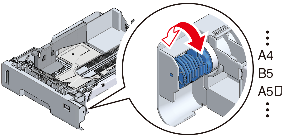 - Configure o botão do tamanho de papel de acordo com o tamanho do papel.