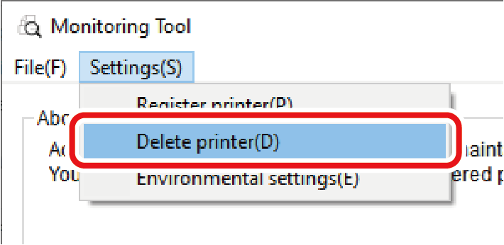 Slet en printer, der er registreret med overvågningsværktøjet.