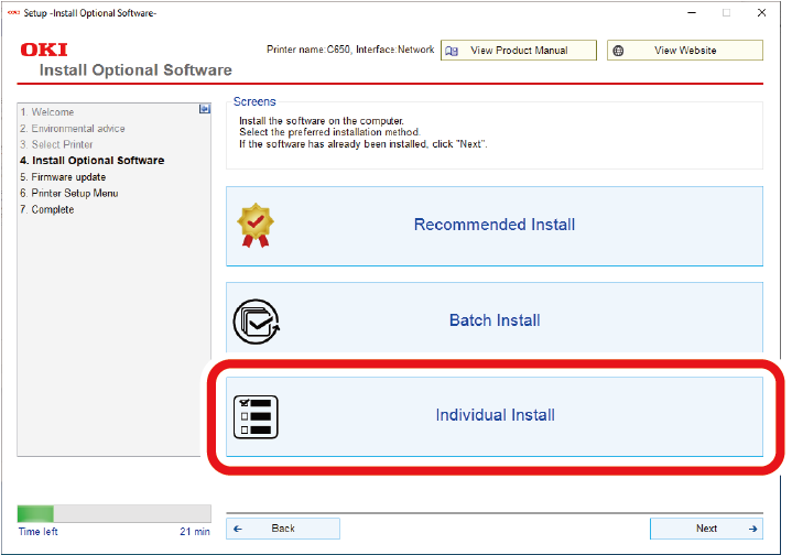 Klik på [Individual Install (individuel installation)].