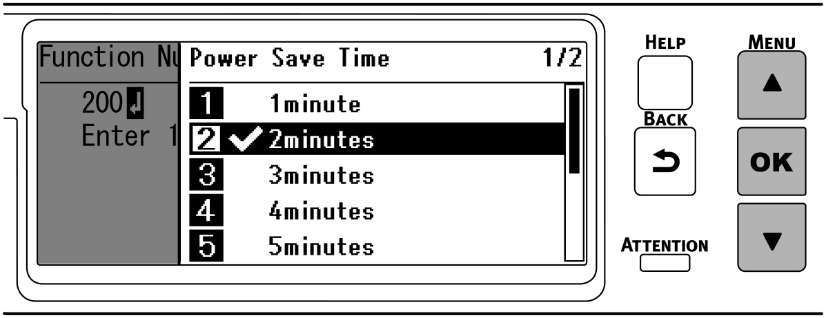 - Denne maskine går muligvis ikke i energisparetilstand efter den indstillede periode, fordi blæseren fungerer, indtil maskinen er kølet af, afhængigt af udskrivningsmiljøet eller brugsbetingelserne.