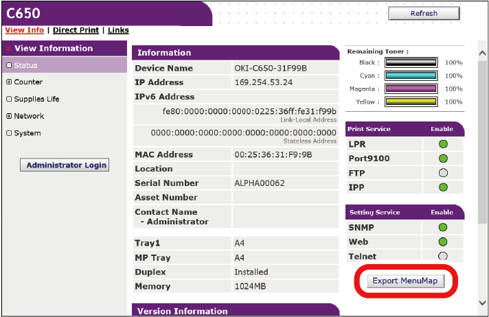 Indstillingerne på denne maskine og brugen af forbrugsstoffer og vedligeholdelsesdele kan gemmes som en CSV-fil.