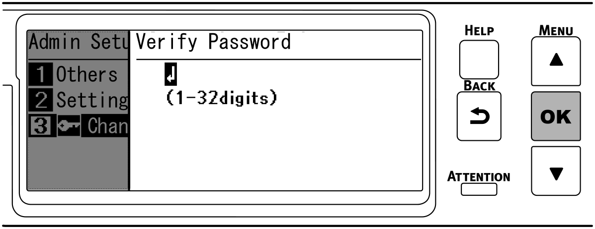 Tryk på «OK» igen for at få vist skærmen [Verify Password (Bekræft kodeord)].