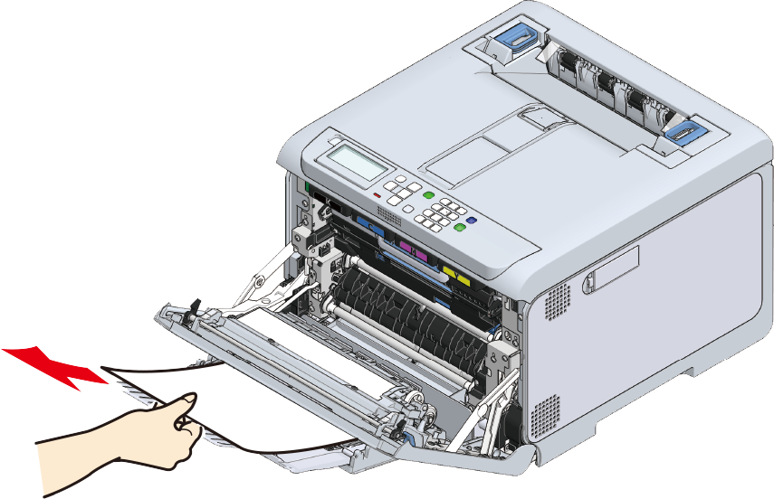 Tag fat i kanten af det fastklemte papir, og træk det forsigtigt ud.