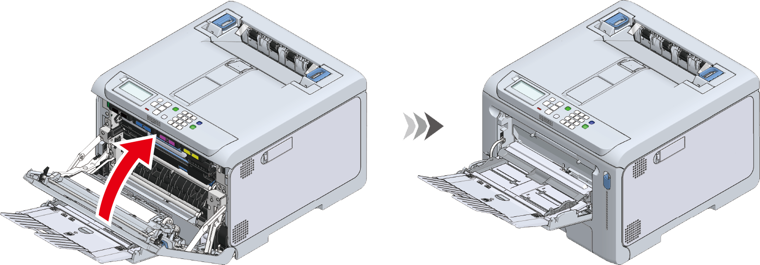 Fjern midlertidigt alt papir, der er placeret i den multifunktionelle bakke (MP-bakken).