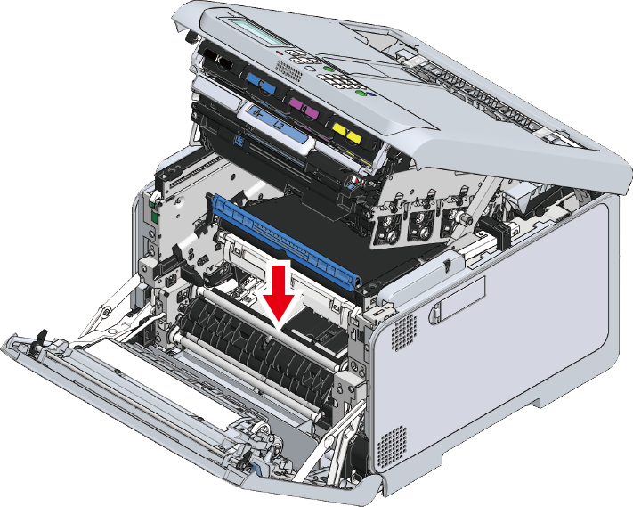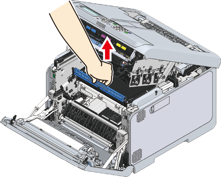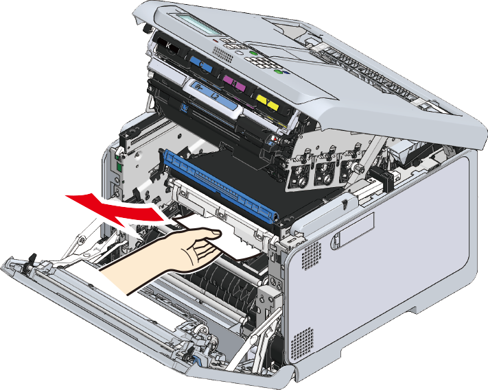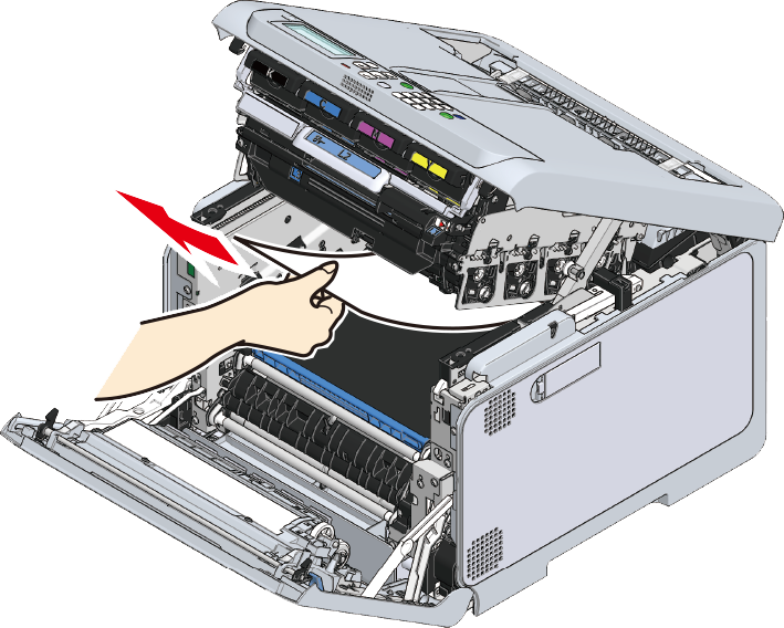 Fjern papir, der er tilbage på bælteenheden.