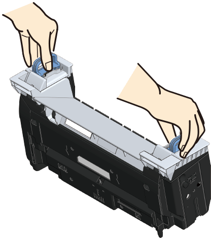 Fjern fikseringsenheden fra denne maskine ved at tage fat i dens venstre og højre håndtag.